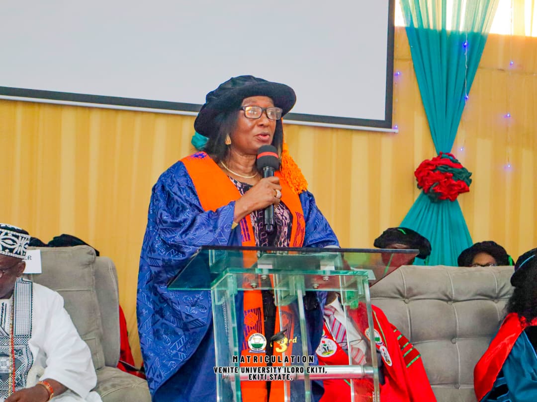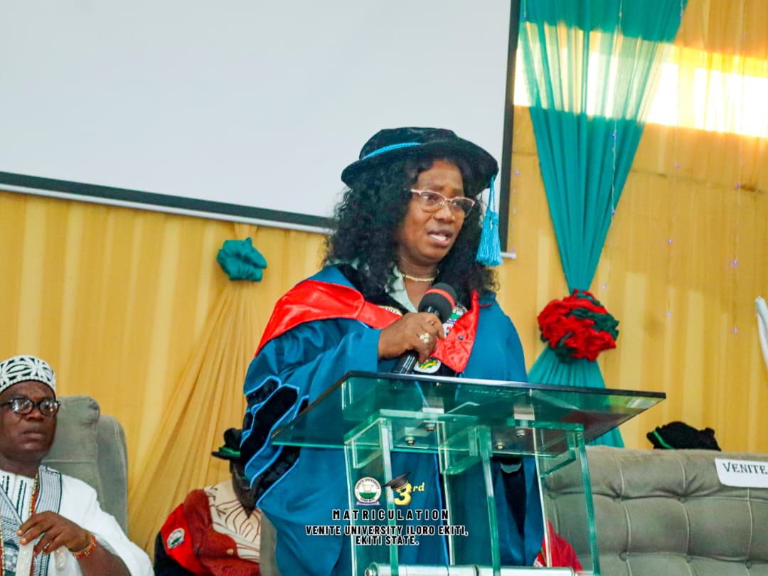 Pro-Chancellor, Professor Olabisi Aina, in her address, commended the new students for joining the university at a pivotal moment. She encouraged them to embrace their role as pioneers of purpose and to contribute to the legacy of Venite University through integrity, discipline, and creativity.